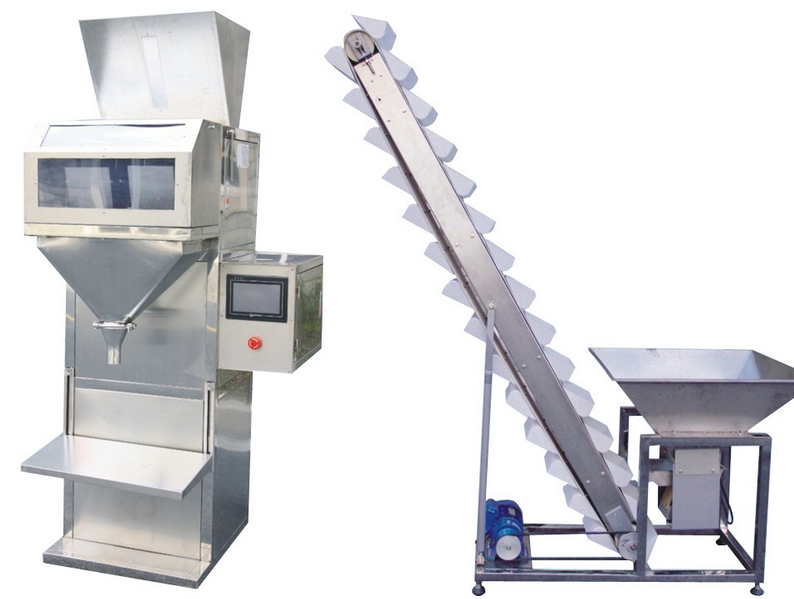 當設備通電運行時,在電機的帶動下,通過皮帶輪帶動葉輪高速旋轉,使包裝機的出料機構內形成負壓。與此同時,在進料口由于物料在重力的作用下向進料口漏料,原料經出料口送出完成一個完整的包裝流程,這時候當其物料袋裝滿物料其重量達到預先設置重量時(可通過添加砝碼或設置自動控制儀來調整設置重量。),行程開關或傳感器的信號會作一個反饋比較,這時候電磁閥工作,關閉出料口,停止灌裝并經自動掉袋裝置自動掉袋或松開口袋處的夾緊裝置,實行手工掉袋。